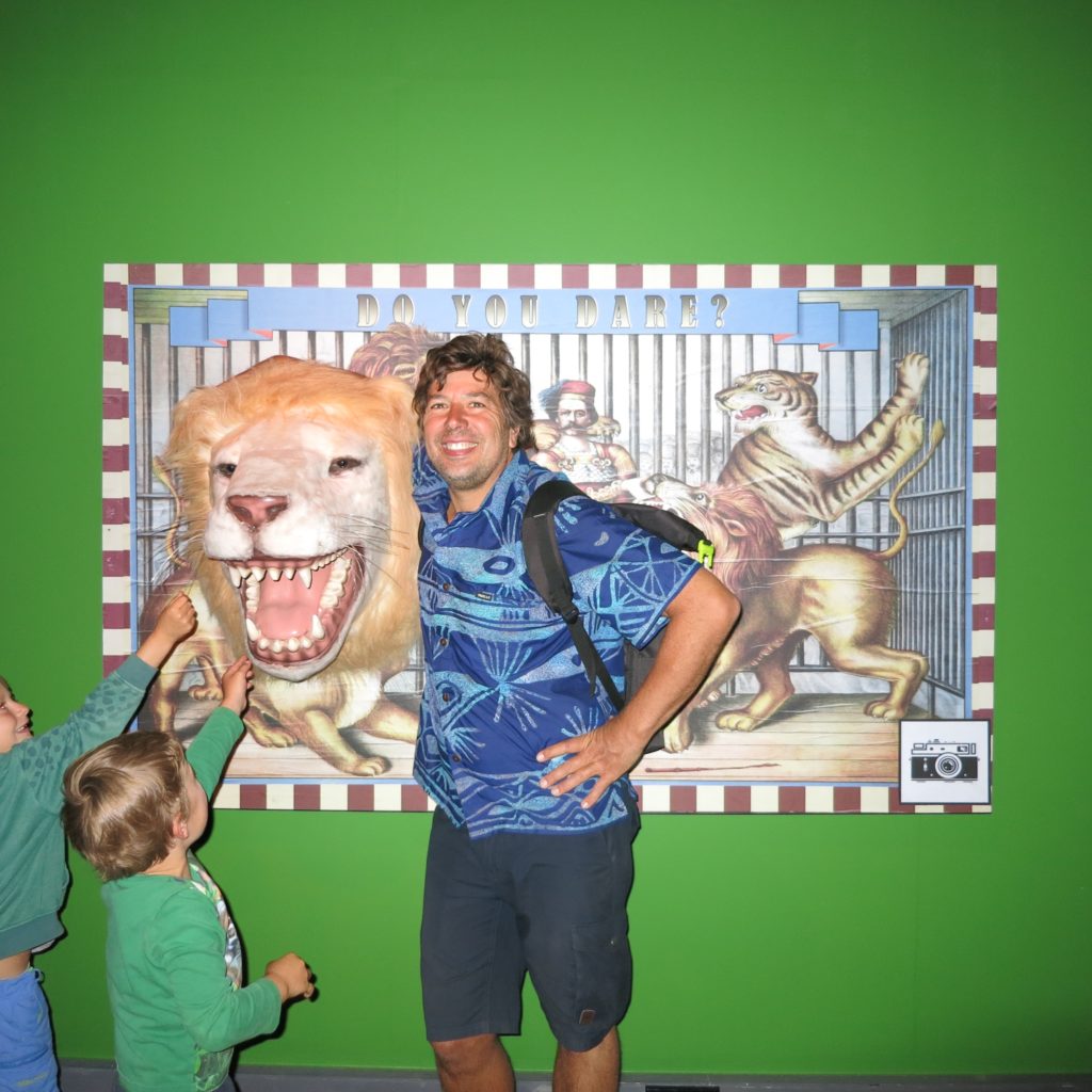 #2: Das Puke Ariki Museum in New Plymouth – ein Museum zum Anfassen und Erleben und alles ganz umsonst. Unser besonderes Glück ist eine Sonderausstellung mit dem Titel “The Mechanical Cirus”, die die Kinder begeistert. Alle möglichen mechanischen Szenarien mit Knöpfen zu drücken, Rädchen zu drehen usw. Zum Glück, denn der Wettergott ist uns mal wieder nicht so hold. Es ist extrem windig. Hier eine Serie unserer starken Kinder…