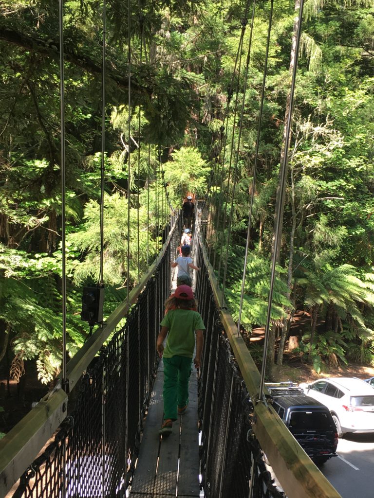 Nichtsdestotrotz atmen wir im Wald beim Tree Walk alle erstmal tief ein, kein Schwefel-Gestank, nur duftender Wald, durch den wir auf ungefähr 10m Höhe laufen.