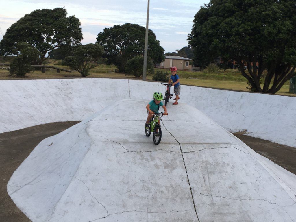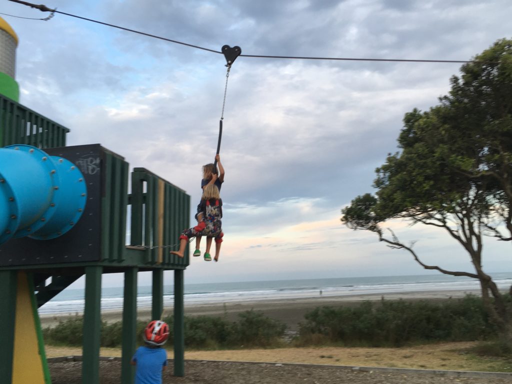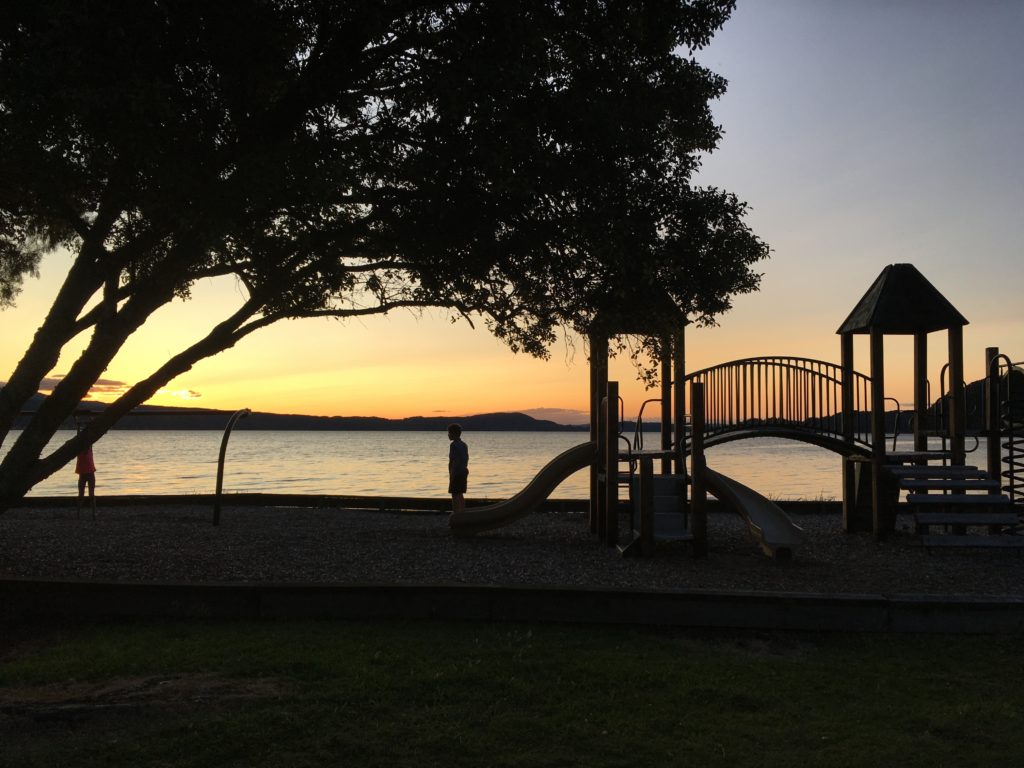 Erst relativ spät sind wir zurück beim Campervan und fahren wieder zurück ohne zu wissen, wo wir übernachten werden. Und weil sich unterwegs nichts Besseres findet, fahren wir nach Wochen mal wieder ans Meer. Ohope Beach, erst Campingplatz (Pool, Waschmaschinen, Kinderprogramm und so), dann Freedom Camping. Endlich richtige Sommersonne und Sommerabende zum Draußensitzenbleiben…
