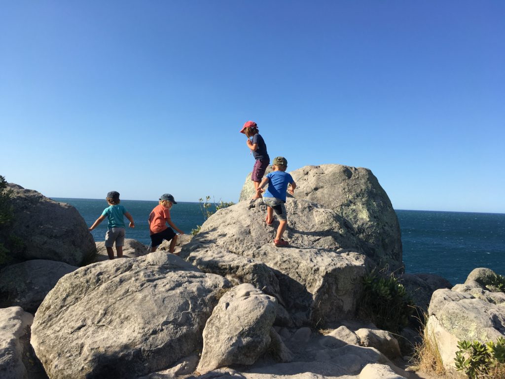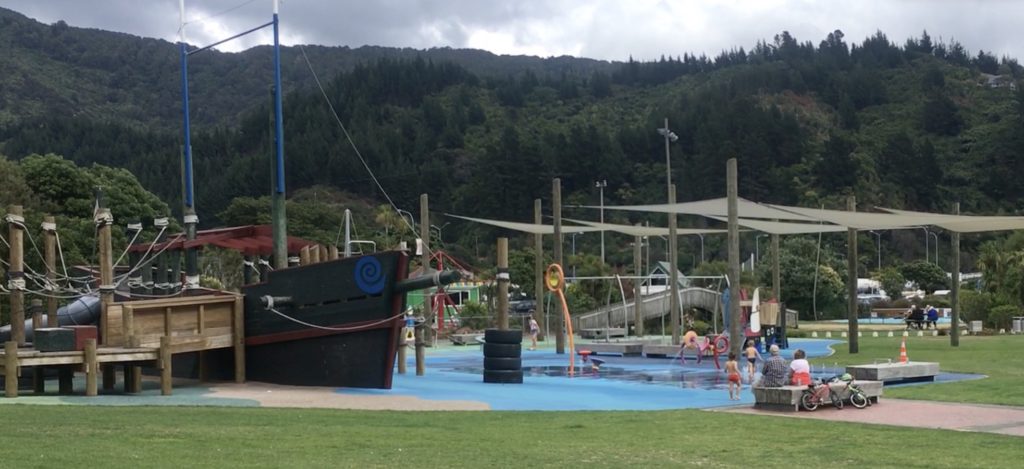Wie alle, die mit der Fähre kommen, starten wir auf der Südinsel in Picton, einem kleinem Städtchen, in dem die die großen Fähren ankommen. Das hat mal wieder einen unglaublichen Spielplatz zu bieten. Wir bleiben einen Tag, die Mädels finden ein deutsches Mädchen zum Spielen, es gibt Waschmaschinen mit Heißwaschprogramm und außerdem muss man sich nach der inzwischen sehr trocknen Nordinsel erstmal an das ganze Grün gewöhnen. Außerdem machen wir einen Bootsausflug nach Lochmara, einer kleine Bucht, mit Kunstwerken an jeder Ecke, einem Unterwasser-Aquarium, jede Menge Hängematten zum Herumlümmeln, Schildkröten und Papageien und einem kleinen Hotel, das leckeren Cappuccino macht…
