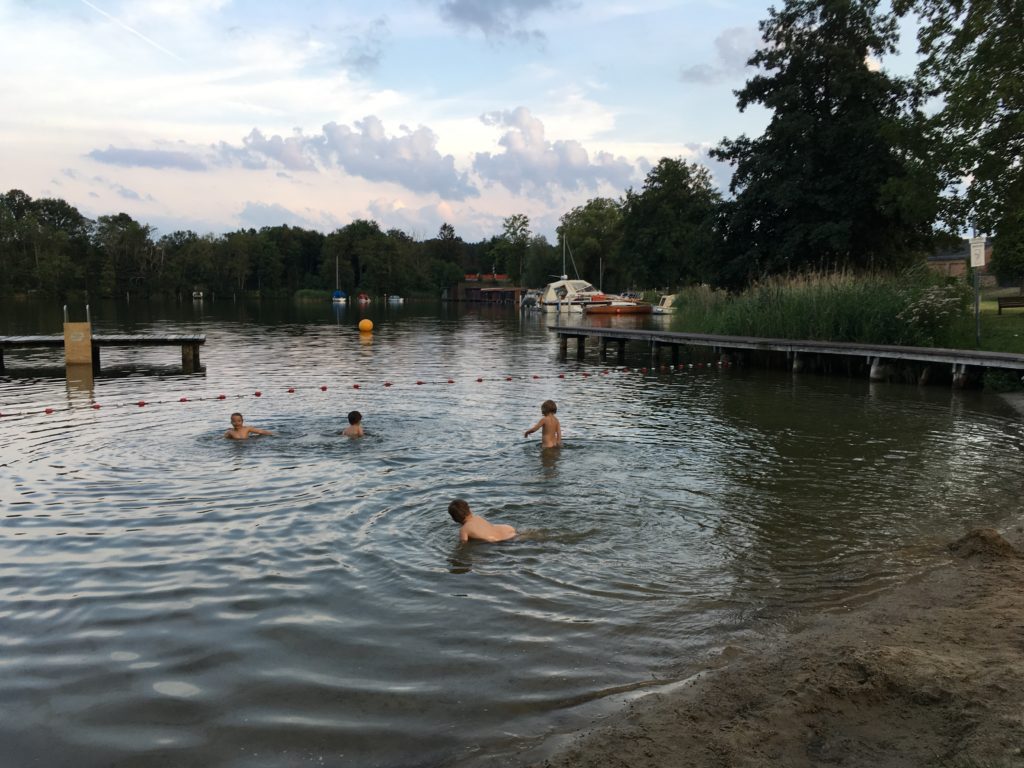 Nach unserer ereignisreichen Hausboot-Woche fahren wir zu sechst weiter Richtung Usedom – eine weitere Woche Urlaub, aber diesmal mit festem Boden unter den Füßen in einem Familienhotel – das heißt ein Spielplatz zwischen Bäumen, ein Kinderpool zum Plantschen, kinderfreundliche (und natürlich auch elternfreundliche, weil wir uns nicht groß ums Essen kümmern müssen) Halbpension, ca. 1 km zum Strand und kostenlose Kinderbetreuung ab vier Jahren, wenn gewünscht und natürlich viele andere Kinder. Die Lautstärke ist schon mal kein besonderes Problem…